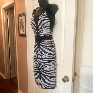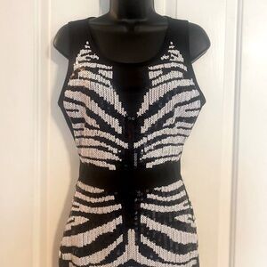 “BEBE” Zebra Stripes Sequin & Mesh Dress