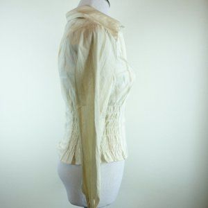 BEBE beige white stripe long sleeve button up shirt top NWT mod 70s vibe S