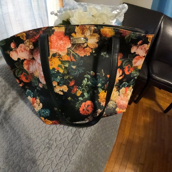 beautiful BEBE floral tote bag. zip top. inside zipper pocket. excellent condition, not been used.