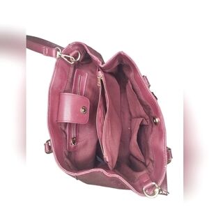 BEBE plum/Burgundy monogram convertible bag, handbag/crossbody