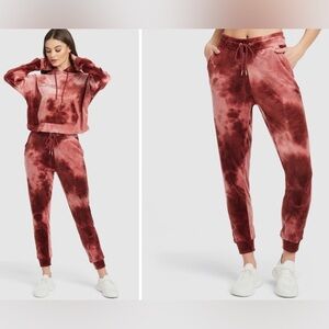 BEBE plush LOGO dark red burgundy TIE DYE velour JOGGER size XL brand new