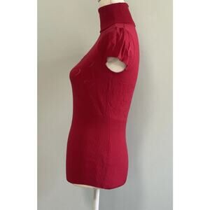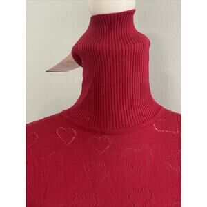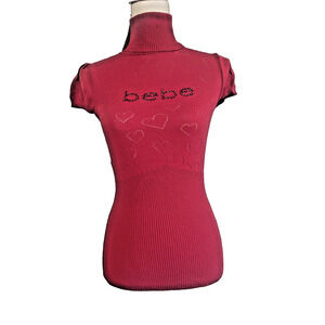 BEBE red ribbed Y2k Vtg Heart turtleneck with bebe Logo Rhinestone Shirt NEW L