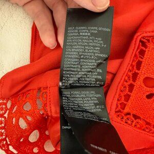 BEBE red shirt crop top women's large NEW with Tags on lace and zipper