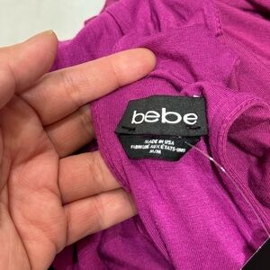 BEBE ruched bodycon dress mock neck open back sleeveless magenta Medium NWT