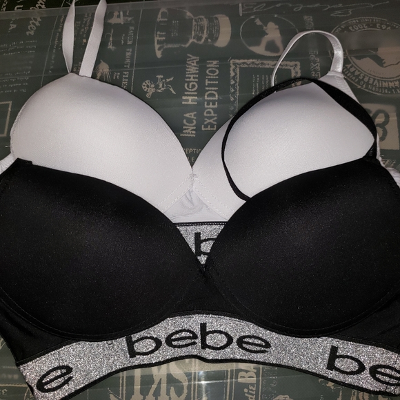 EUC BEBE black white bra set. 36B