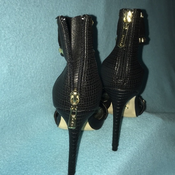 BEBE studded lizard print ankle wrap zipper back heels NEW size 6 Host Pick🎉