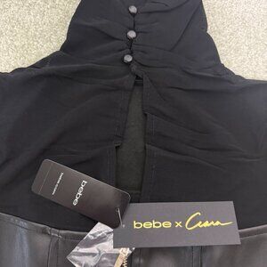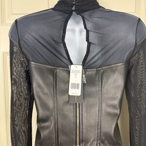 BEBE x Ciara Mock Neck Mesh Combo Vegan Leather Top (XS)