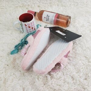 BEBE Plush Pink Glitter Logo Flip Flop Sandals 4/5