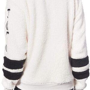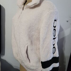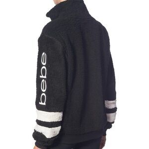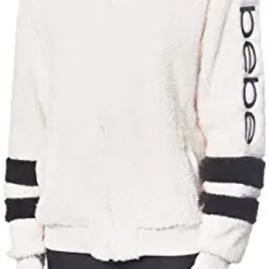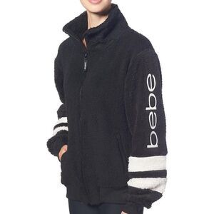 Stay warm in this sherpa striped embroidered logo jacket by Bebe Sport