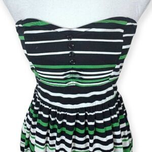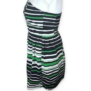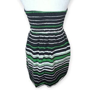 BEBOP GREEN, BLACK, & WHITE STRIPE STRAPLESS DRESS SZ.S EUC.