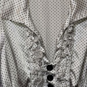 BEBOP dress black white polkadot satin top black buttons ruffles 60's happy days