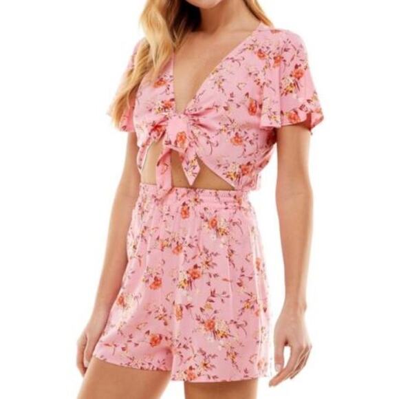 BEBPOP XS juniors pink floral short sleeve cutout romper NWT B126