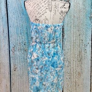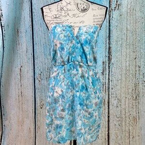 BEC + BRIDGE EUC Blue Sky Printed Strapless Silk Dress
