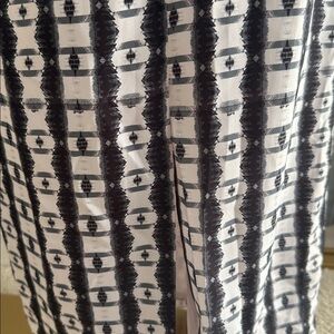 Elevate your style with this chic black and white patterned dress. Perfect for any occasion, this dress offers a flattering fit and timeless design. The color is almost a slate gray/ with an undertone of blue. Lined. Has a unique back. Excellent condition with the exception of the slit near the hem has come undone a bit and needs a little repair. See picture for detail. Not noticeable unless closely inspecting. Priced accordingly. Measurements laying flat (unstretched and approximate inches)
