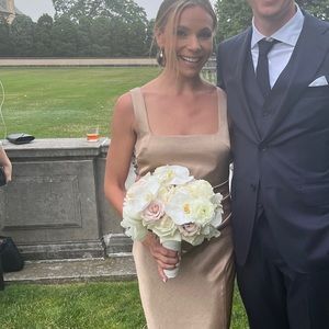 Worn twice total, once by myself. A couple very small snags in the fabric, tried to show in photo, not really noticeable in person! Seam above the slit is a little ripped (pictured) -could definitely be fixed but also would go unnoticed!