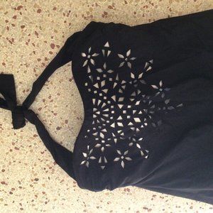 BECCA BY REBECCA VIRTUE LASER CUT BLACK SWIMDRESS! SIZE OX!