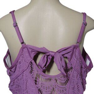BECCA BY REBECCA 2X Virtue Mauve Purple CROCHET One Piece Plunge Swim suit