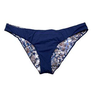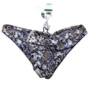 BECCA Bikini Bottom Reversible Womens Size Large Blue Snake Print Hipster NEW