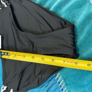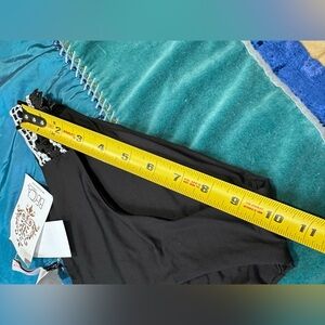 Made from a comfortable blend of Nylon and Spandex, this black bikini bottom features crochet and lace accents, perfect for a beach or poolside look. The hipster style offers a flattering fit, with an elastic waist and lightweight, stretchy material for added comfort. Ideal for summer vacations or a day at the beach, this becca bikini bottom in size medium is a chic addition to any swimwear collection.