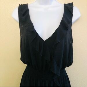 BECCA Black Ruffle Breezy Basics Semi Sheer Coverup Mini Dress Size L