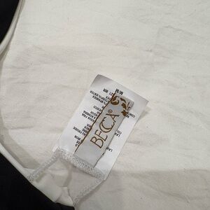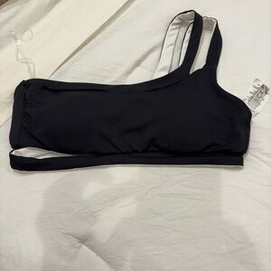 Becca black and white bikini top with bottom one shoulder and reversible with a stylish design. Features a classic black and white color scheme.