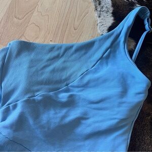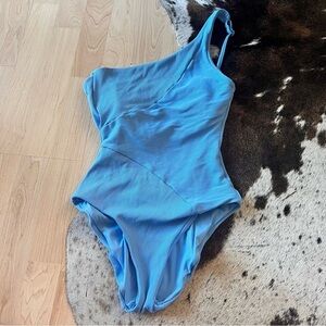 BECCA Blue Fine Line Adeline One Shoulder One Piece Swimsuit Size Small