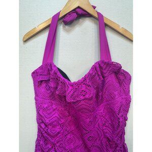 BECCA By Rebecca Virtue Halter One Piece Swimsuit Plus Size 1X Purple Chic Beach