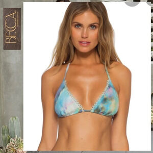 BECCA Crystal Lake Triangle Bikini Top, MULTI, Size Large, NWT