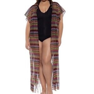 Beautiful colors in this light weight fringed long cover -up
