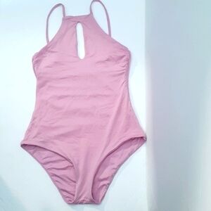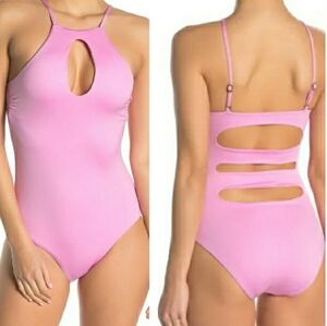 BECCA Keyhole Halter One-Piece Pink Swimsuit Size S
