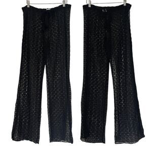 BECCA Lace Crochet See Through Split Leg Swim Cover Up Pants in Black Size M