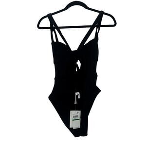 BECCA Modern Edge Rib High Leg One Piece Swimsuits Black Size Large NWT
