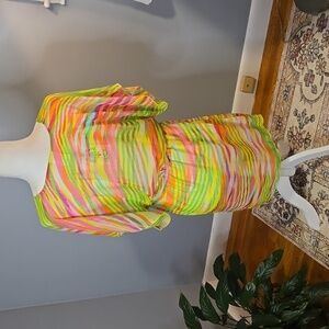 BECCA Multi Colored Light and Airy Elastic Waist V-Neck Cover-Up Sz XS-S