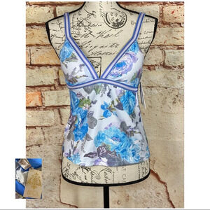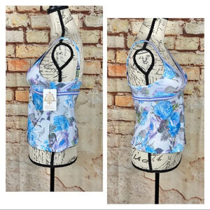 BECCA NWT Blue Multicolor Floral Tankini Swim Top