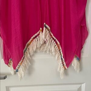 Vibrant pink coverup with tassel details. Lightweight and stylish. Perfect for beach days.