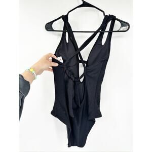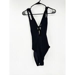 BECCA Prism Cutout One Piece Black Plunge Neck Swimsuit Size Small