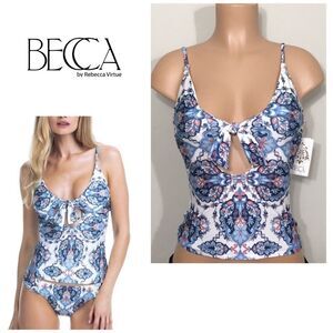 The boho-chic design of Becca tankini top makes it a style-inspired match for classic ruched bottoms. I have this in a set on my page. You can find matching bottoms in red, blue, white, on my page. Hundreds to choose from. Bundle and save!