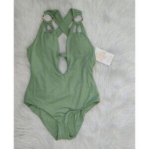 BECCA by Rebecca Virtue One-Piece Swimsuit S Plunge Sage Green NEW