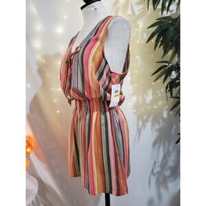 BECCA by Rebecca Virtue Smocked Sleeveless Dress Womens Size M NWT Multi Stripe