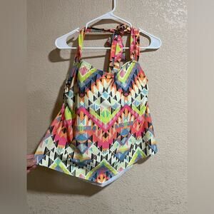 BECCA geometric bathing suit - halter top high waist ruched bottom plus size 1X