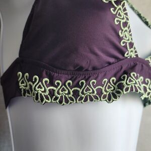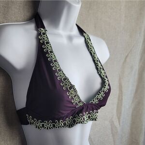 Super cute bikini top from BECCA. Purple with a light green lace. There is a space to put pads in, but there are non included. Size small