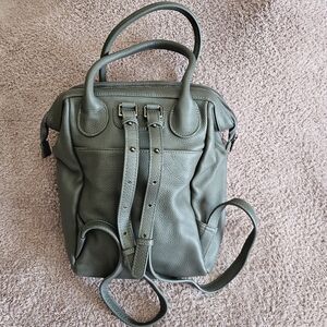 Excellent condition! Bought and never used it. It has been kept inside a dust bag. Premium leather beckpack in a medium gray color.