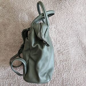 Excellent condition! Bought and never used it. It has been kept inside a dust bag. Premium leather beckpack in a medium gray color.