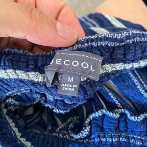 BECOOL Navy Blue Stripe Jumpsuit Sleeveless Size Medium