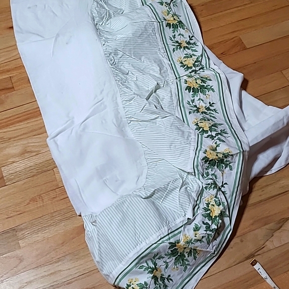 queen size bed ruffle with 2 standard matching shams. 1 matching floral print, queen flat sheet. Quality Cotton.