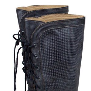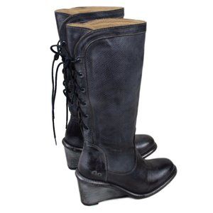 BED STU Empress Black Rustic Wedge Lace-Up Distressed Leather Tall Boots