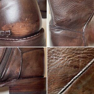 Handcrafted, hand glazed and imperfect by design so each boot has unique color variations and different vintage, distressed and imperfect style markings, scratches, indentations, wrinkling, crackling, peeling & scrapes. With time and wear, the leather will continue to evolve into a look that is one-of-a-kind. The finish will continue to distress with use and rub or peel off.