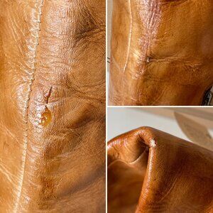 Small deep scratch in leather as shown in close-up picture. Also, tiny indentation/hole near ankle as shown in close-up picture.
