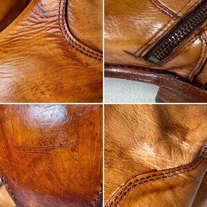 Handcrafted, hand glazed and imperfect by design so each boot has unique color variations and shading and different vintage, imperfect, distressing style markings, scratches, indentations, specks, scrapes & crackling. The finish will continue to distress with use and as a result the finish will rub off.