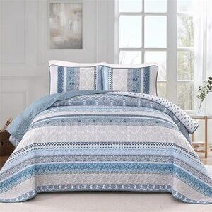 BEDDING Boho Quilt Set Queen Size,Blue Bohemian 3 Pieces Quilt Sets